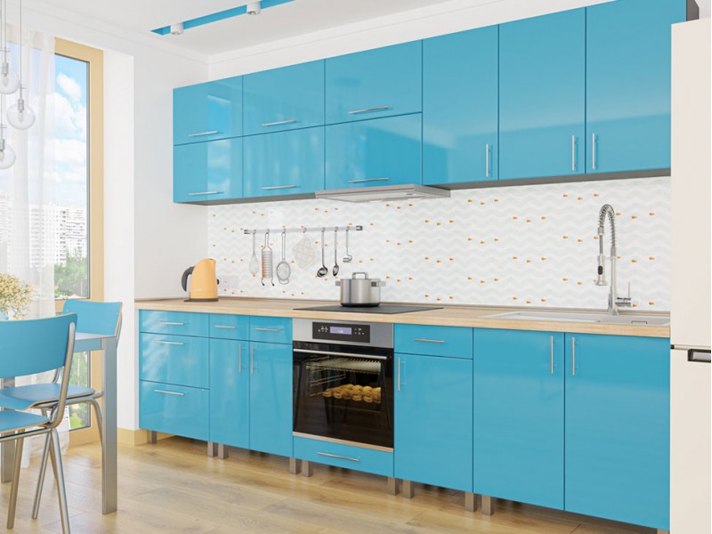 Кухня "Колор-Мікс" - модульна посекційна кухня, яку можна підібрати на будь-який розмір. Кухня "Колор-Мікс" комплектується фарбованими фасадами в глянцевому виконанні та рейлінговими ручками в кольорі - хром. Фасади виготовлені із МДФ товщиною 16мм та мають радіус заокруглення країв 6мм. Колір фададів може бути однотонний або з ефектом металік.