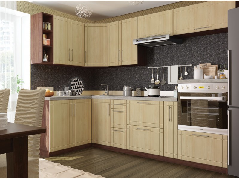 Корпус кухні виготовлений з ламінованого ДСП товщиною 16мм (фірма Swisspan) і буває в таких кольорах: Чорний, Бетон, Сірий металік, Білий, Слонова кістка, Антрацит, Венге, Дуб аппалачі. Корпуси комплектації "Люкс" можуть бути тільки в кольорі: Антрацит, Білий, Венге, Дуб молочний, Слонова кістка, Чорний, Бетон, Дуб аппалач. Торці ДСП обклеєні кромкою ПВХ 0,6мм (фірма REHAU Німеччина). Внутрішні полиці і задня стінка білого кольору.