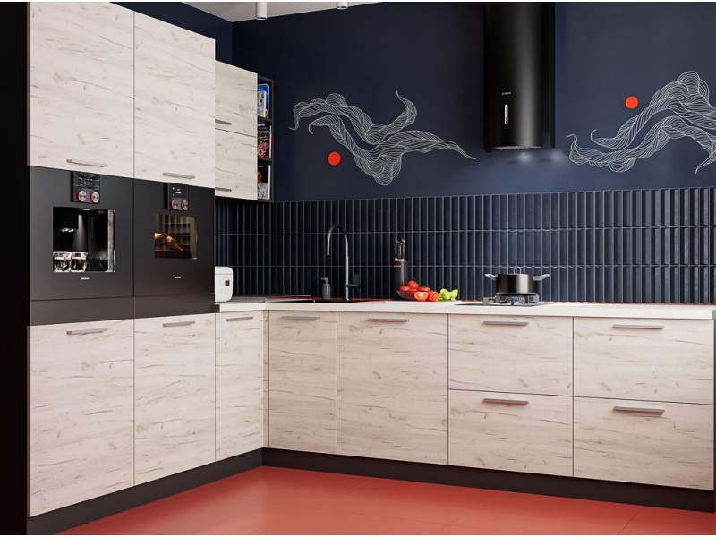 Корпус кухні виготовлений з ламінованого ДСП товщиною 16мм. Внутрішні полиці і задня стінка білого кольору. Можлива комплектація Стандарт чи Люкс (з доводчиками). Стільниці виробника Krono, товщиною 28мм і 38мм. Можна замовити будь-який розмір, кратний 10см, максимальна цільна довжина стільниці 3м або 4м.