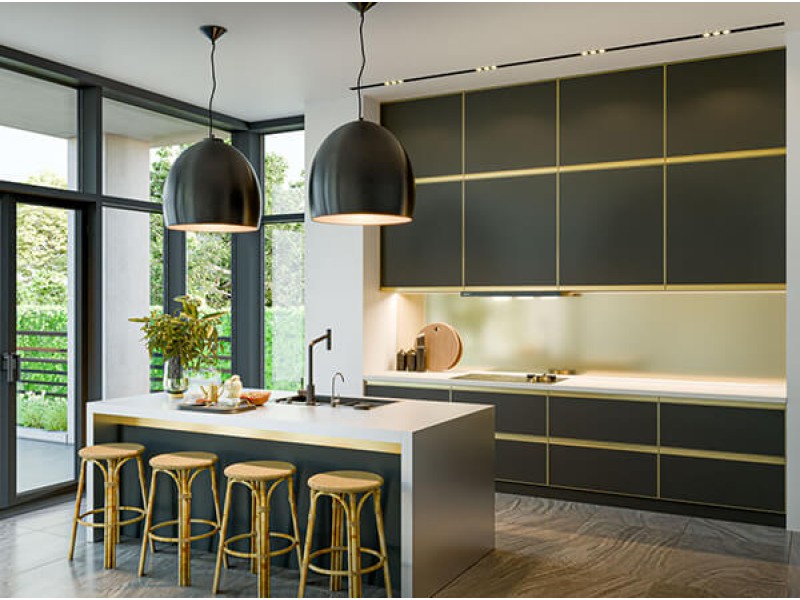 Кухня "ALTA" от фабрики Вип-Мастер — модульная наборная кухня, которую можно подобрать под любой размер. Мы предлагаем на выбор 84 верхних и 52 нижних модуля, благодаря чему кухня легко адаптируется к любым параметрам помещения. Её фасады изготовлены из ламинированного ДСП толщиной 16 мм, оформленного прочной алюминиевой рамкой. Особенность дизайна — интегрированная ручка из алюминиевого профиля, доступная в трёх цветах: классическом алюминии AL, элегантном чёрном BL и золоте GL.