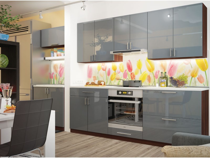 Кухня "Колор-Микс" – модульная посекционная кухня, которую можно подобрать на любой размер. Кухня "Колор-Микс" комплектуется крашеными фасадами в глянцевом исполнении и рейлинговыми ручками в цвете – хром. Фасады изготовлены из МДФ толщиной 16 мм и имеют радиус закругления краев 6 мм. Цвет фасадов может быть однотонным или с эффектом металлик.