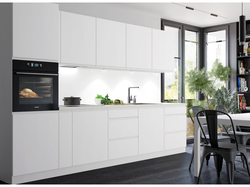 Кухня "Interno" - модульная наборная кухня, которую можно подобрать на любой размер. Кухня "Interno" комплектуется крашенными МДФ фасадами с интегрированной ручкой. Фасады могут быть с матовой или глянцевой поверхностью.