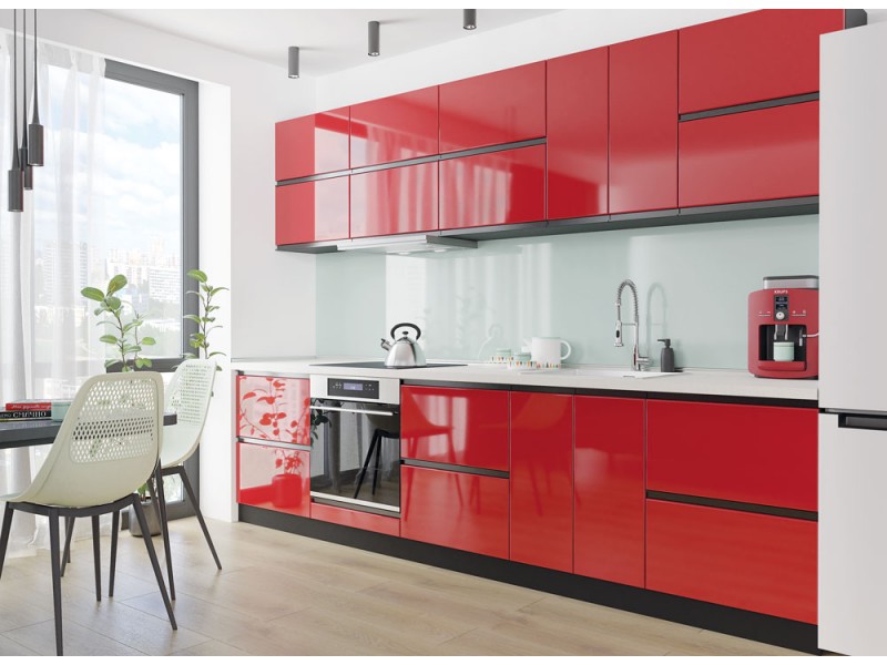 Фасады кухни "RioLine" изготовлены из МДФ толщиной 16мм и оклеены матовой или глянцевой пленкой, так называемый - пленочный МДФ. Для производства фасадов используется качественная плотная пленка ПВХ по современной технологии покрытия SOFT Touch. Предлагается 10 матовых и 18 глянцевых цветов фасадов на выбор от спокойный до ярких, относительно легких в эксплуатации: Белый, Светло-коричневый, Светло-серый, Темно-серый, Серо-зеленый, Серо-голубой, Черный, Темно-коричневый, Бордовый, Зеленый. Можем изготовить фасады под индивидуальный размер.