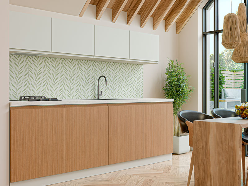 Кухня WOODLINE – фасады покрыты натуральным шпоном, который подчеркивает текстуру дерева и придает интерьеру тепло и гармонию. Главная особенность – интегрированная ручка, которая внутри также облицована шпоном. Это модульная наборная кухня, которую можно подобрать под любой размер. Мы предлагаем 84 верхних и 52 нижних модуля, благодаря чему кухня легко адаптируется к любым габаритам помещения. Кухня WOODLINE прекрасно сочетается с кухней INTERNO, так как у них одинаковая по форме интегрированная ручка.