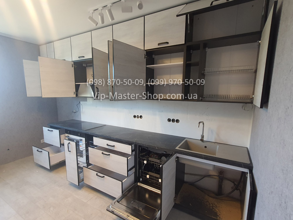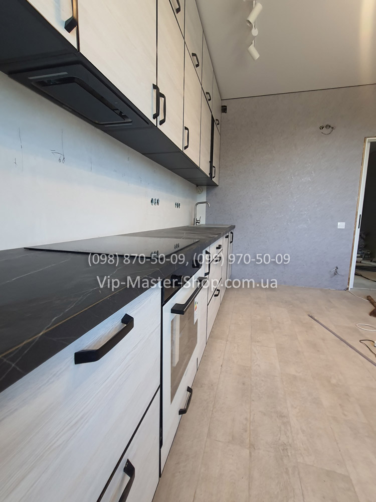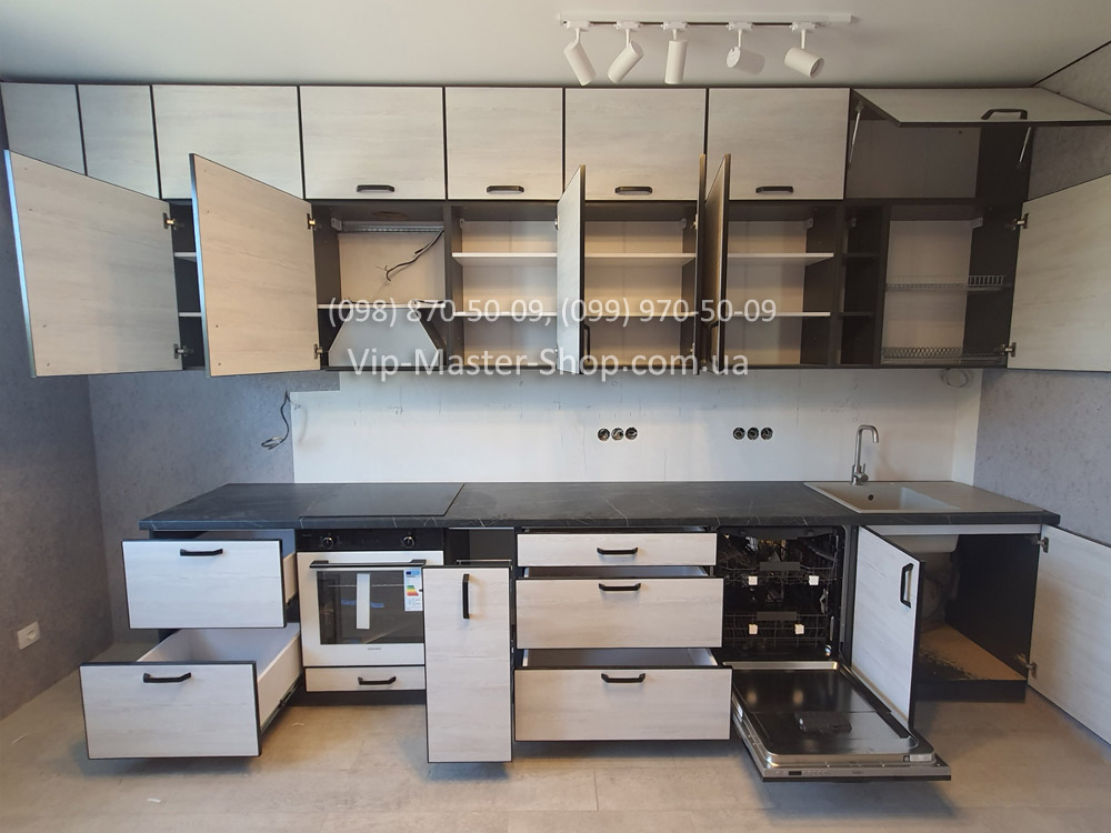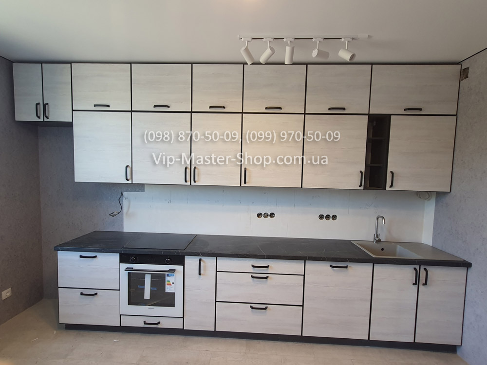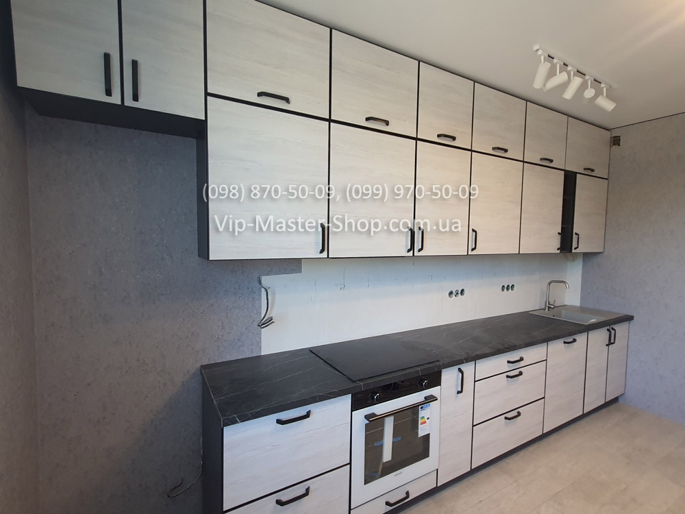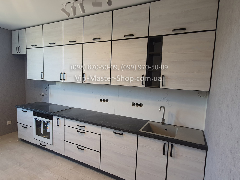 Ещё один отличный пример реализации модульной кухни от фабрики Vip-Master. В этом проекте клиент выбрал модель ALTA в рамке чёрного цвета — лаконичную и современную кухню, которая сочетает функциональность и стиль.
