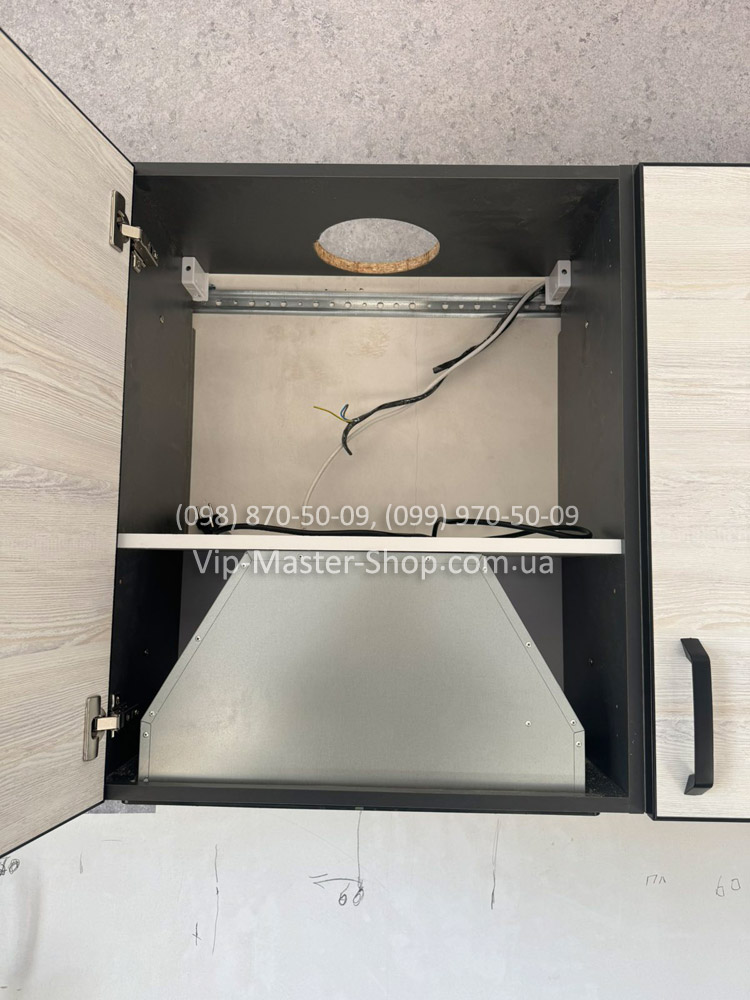 Особое внимание уделено продуманной эргономике: в верхних секциях интегрирована встраиваемая вытяжка, которая незаметно вписывается в дизайн и сохраняет чистоту линий. Вся фурнитура — надёжная, с плавным открыванием и закрыванием. Материалы устойчивы к механическим повреждениям, поэтому кухня будет удобной в ежедневном использовании на протяжении многих лет.