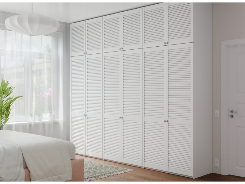 Розпашна шафа Техас з жалюзійними фасадами є відмінним доповненням до будь-якого інтер'єру. Фасади цієї шафи виготовлені з натурального дерева і доступні у двох кольорах на вибір - білий або антрацит. Корпус виготовлений із якісного ламинованого ДСП 18мм. Горизонтальні планки забезпечують відмінну вентиляцію в середині. Шафа Техас підходить для різних стилів дизайну, надаючи кожному з них елегантного вигляду. Ця шафа буде якісним і практичним рішенням для зберігання вашого одягу та інших речей.